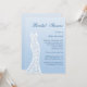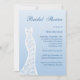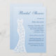 Une belle robe en dentelle vintage accentue cette invitation à la douche nuptiale, sur un arrière - plan bleu placide.