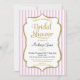 Une élégante invitation à la douche nuptiale rose et or avec cadre d'accent parties scintillant en faux or et rayures rose et blanc avec l'or et le texte noir. Cet invitation de douche nuptiale moderne est une façon super élégante pour les invités wedding showers invitations à votre fête nuptiale formelle.