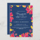 Cette invitation à la douche nuptiale amusante et élégante (4,5 x 6,25 po) présente des fleurs colorées de style tropical illustrées le long de la frontière. Parfait pour un événement luau, une île tropicale ou un événement wedding shower à thème hawaïen. Le texte peut être customisé pour votre occasion spéciale menant au mariage.