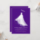 Ces invitations à la douche nuptiale sont une véritable célébration des sentiments de la mariée et de l'amour de son prochain mariage. L'élégance du design est dans sa simplicité, mettant en valeur une magnifique silhouette de la mariée dans sa robe mariage époustouflante. Cet élément visuel évoque une ambiance romantique et fantaisiste, attisant les émotions d'amour et de réminiscence nostalgique. L'illustration artistique, marquée par ses touches audacieuses, se fond sans faute dans un fond violet profond, enrichissant le charme du design. Cette approche simple mais impactée exprime magnifiquement l'éclat de la mariée et le charme du mariage, en s'assurant que les invitations laissent une marque durable en cette occasion mémorable.