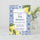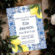Le meilleur reste à venir avec cette invitation de douche sur le thème du citron et de la porcelaine bleue ! Un cadre de porcelaine bleue vintage et de plants de citron entoure un texte amusant et féminin pour un look qui convient parfaitement à votre prochaine douche de mariée, douche de mariage ou douche de bébé ! Cette invitation est la combinaison parfaite de vintage, rustique et moderne avec son cadre de style porcelaine espagnole bleue et blanche complet avec des citrons frais et ensoleillés, ce qui en fait l'ajout parfait à votre prochain événement !