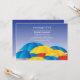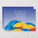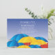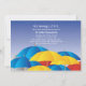 Une invitation à la douche nuptiale colorée avec des parapluies ouvertes contre une pluie légère.La carte est facile à customiser avec votre libellé, police, couleur de police et choix de six types de papier.
