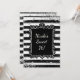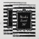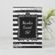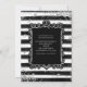 Invitation de fête à rayures noir et blanc avec paillettes argentées