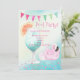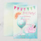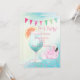 Invitation de fête au bord de la piscine pastel à l'aquarelle avec radeau de flamant rose et boisson tropicale fraîche apporte l'ambiance estivale à votre invitation ! Les couleurs pastel douces en rose et bleu, jaune et vert ajoutent une touche d'élégance