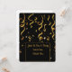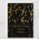 Modèle d'invitation de fête avec confettis dorés. Invitation de fête de célébration avec confettis dorés. Personnalisez votre police, style, couleurs et images sont redimensionnables. Personnalisez votre invitation de fête. Idéal pour le nouvel an, l'anniversaire ou l'anniversaire de mariage. Simple et propre sur fond noir. Remarque : aucun métal doré réel ne sera utilisé dans la conception.