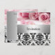 Invitation de fête avec des roses roses damassées,