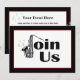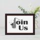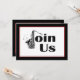 Donnez du rythme à votre prochain événement avec cette invitation de fête avec saxophone jazz. L'invitation présente un design noir et blanc avec une touche de rouge dans la bordure et les mots REJOIGNEZ-NOUS où le J est un saxophone. Des notes de musique complètent le design contemporain et épuré. Personnalisez avec les informations de votre fête. Cliquez pour personnaliser la police et la disposition du texte.