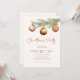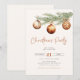 Invitation de fête de Noël minimaliste neutre avec une branche de pin aquarelle décorée de boules de Noël.