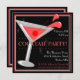Un martini rouge pétillant avec juste une touche d'excitation décore cette invitation de fête cocktail ! Chaque ligne peut être personnalisée selon vos besoins.