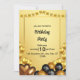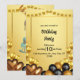 Préparez-vous à une fête d'anniversaire glamour avec cette luxueuse carte d'invitation en or et noir. Décorée de ballons métalliques brillants, d'accents en forme de coeur et de bannières festives, cette carte dégage élégance et festivité. L'arrière - plan or riche et le texte noir gras font ressortir magnifiquement les détails de votre fête. Idéal pour des fêtes d'anniversaire pour adultes ou des événements haut de gamme, cet invitation laissera une impression durable à vos invités. Entièrement personnalisable pour convenir à la date et aux détails de votre événement.