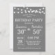 Invitation conjointe d'un adulte à la fête d'anniversaire. Coanniversaire de la fête combinée. Arrière - plan gris. Homme ou femme, garçon ou fille Anniversaire Invitation. Éclairage à cordes. 13ème 15ème 16ème 18ème 20ème 21ème 30ème 40ème 50ème 60ème 70ème 80ème 90ème 100ème, n'importe quel âge. Pour plus de personnalisation, cliquez sur le bouton "Customiser" et utilisez notre outil de conception pour modifier ce modèle.
