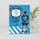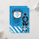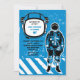 Une invitation réaliste et grunge comportant un astronaute et un casque "cadre" pour souligner le nom et l'âge de votre enfant. Il est facile customiser la carte avec vos mots, police, couleur de police et choix de six types de papier.