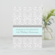 Carte d'invitation de fête d'anniversaire de mariage de 25 ans en bleu turquoise clair élégant, gris et blanc, motif damas floral classique romantique vintage, délicat et contemporain. Personnalisable avec les détails de votre fête.
