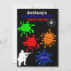Commencez votre fête dès maintenant avec une invitation à la paintball pour cet anniversaire spécial. C'est une invitation éclatante pour une soirée de paintball avec des boules de peinture colorée qui dérivent. Personnalisez l'invitation avec vos informations de fête.