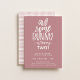 Jolie invitation à la fête d'anniversaire "un peu de lapin" en rose poussiéreux. Typographie blanche avec accent d'oreille lapin et support motif de style tissé à la main.