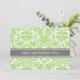 Quarantième invitations de fête d'anniversaire de coutume en vert de chaux élégant et assez lumineux, charbon de bois gris-foncé, et motif floral classique et chic blanc de damassé. Ajoutez vos détails de nom et de partie pour quarantième une invitation unique et élégante de fête d'anniversaire.