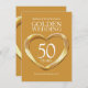 Invitation d'anniversaire de mariage d'or 50 ans. Bel effet d'or liquide dans une forme de cœur imprimé graphiques invitation d'anniversaire de mariage d'or 50 ans. Personnalisez avec vos propres détails de fête d'anniversaire de mariage d'or. L'anniversaire de 50 ans est traditionnellement associé à l'or et le cœur symbolise l'amour. Graphiques et conception originaux par Sarah Trett www.sarahtrett.com