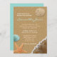Invitation à la fête d'anniversaire de plage de sable et de coquillages. Un invitation élégant pour une fête d'anniversaire sur le thème de l'océan ou de la plage. Le sable, les coquillages et les vagues qui se lèvent sur le rivage font de cette invitation une façon magnifique et unique de invitation votre portée à vos invités.