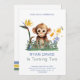 Faites du deuxième anniversaire de votre petit explorateur une balade sauvage avec cette invitation à la fête d’anniversaire de deux singes sauvages de la Jungle! Le design est composé d'un adorable petit singe, d'une végétation tropicale luxuriante et de jolies fleurs jaunes et bleues. Cette conception capte l'excitation d'une célébration sur le thème de la jungle. Les tapisseries fantaisistes et les vibes de safari ont ouvert la voie à des jeux d'animaux, à des collations inspirées de la jungle et à des souvenirs durables. Personnalisez-le avec les détails de votre fête. Créez un look cohésif avec le décor de fête Safari Animals de la même collection. Préparez-vous à un bain d'anniversaire plein de plaisir et d'aventure!