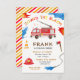 Célébrez l'anniversaire de votre fils ou de votre fille avec cette invitation à la fête d'anniversaire pour camion de pompier mignon. Invitation est décoré avec le cône de sécurité, la hache, l'eau, le feu et le tuyau d'incendie. Le numéro sur le casque de pompier peut être changé pour l'âge de votre enfant. En haut, on lit "SOUND THE ALARM" dans les couleurs pompeuses du rouge, du jaune et de l'orange. Peut facilement être changé pour le premier anniversaire de votre enfant (ou n'importe quel âge!)