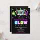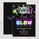 Invitation de fête d'anniversaire néon en lumière noire GLOW PARTY. Personnalisez le texte au recto et au verso.