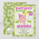 On ne peut pas se tromper avec un peu de vert pour un anniversaire ! Cette invitation présente une tirelire mignonne avec un chapeau de fête et un ballon, accentuée de billets et de pièces.