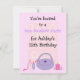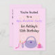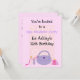 Une invitation ludique et élégante à une fête d'anniversaire spa. Un arrière - plan rose doux avec un set à motifs et un regroupement amusant d'accessoires dans les couleurs mauve et rose. Customisez avec les informations de la partie comme vous le souhaitez.