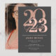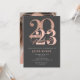 Cette carte de remise de diplôme en or rose moderne prépare le terrain pour une grande réunion pour célébrer votre diplômé. Changez toutes les couleurs qui ne sont pas dans la finition de feuille ou de paillettes factices pour correspondre à votre thème.