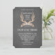 Design aquatique rustique avec bois de cerf et ruban sur fond tableau noir.