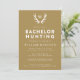 Invitez des invités à une chasse ou un week-end pour célébrer le futur marié avec ces invitations de fête de bachelor sur le thème de la chasse. Ce design présente des bois et un monogramme, avec un texte entièrement modifiable sur le recto et le verso de l'invitation. Que votre voyage soit un week-end, un voyage de deux jours ou quelque chose de plus important, vous pouvez personnaliser ce design pour répondre à vos besoins.