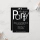 Invitation de fête de Bachelor élégante, ou personnalisez-la pour n'importe quelle occasion. Lettres de style block amusantes et joyeuses dans des nuances de gris sur fond noir. Design contemporain élégant parfait pour une dernière escapade, une soirée entre hommes ou une fête à Las Vegas. Personnalisez en ligne avec les détails de votre événement.
