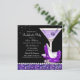 Invitation de fête de bachelorette violette. Design de talons et de cocktail violets jolis. Personnalisez avec vos propres détails. REMARQUEZ S'IL VOUS PLAÎT que toutes les images plates ! Elles n'ont PAS de vraies paillettes ou de scintillements réels.