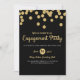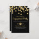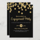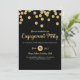 Une invitation de fête de fiançailles à paillettes noires et dorées avec des points dorés.