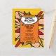 Une invitation de fête de fiançailles de bande dessinée inspirée, amusante, cool et tendance à petit budget qui met le boum, zap, pow dans n'importe quelle célébration de future mariée super-héroïne. Le verso présente un motif à pois de bande dessinée assorti. Conçu par Thisisnotme©