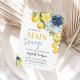 Célébrez la future mariée avec cette invitation de douche de mariage "Main Squeeze" avec des citrons jaunes vibrants et des accents floraux élégants de couleur bleu poussiéreux. Le mélange parfait du charme des agrumes méditerranéens et du style botanique classique, cette conception établit un ton rafraîchissant pour une garden-party de printemps ou d'été. Personnalisez facilement le texte pour inclure tous les détails de votre événement pour un look unique et professionnel. Ce thème tendance au citron est un moyen lumineux et joyeux d'inviter amis et famille à une célébration inspirée de la Méditerranée.