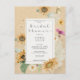 Cette conception de fête de fiançailles présente un beau cadre de tournesols à l'aquarelle douce et d'autres fleurs estivales sur un fond jauni beurré doux en détresse. C'est romantique avec une touche de vintage. Créé par Simply Farmhouse Press.