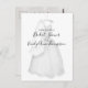 Carton d'invitation de Fête de Fiançailles de Mariage simple. Une jolie Robe de Mariée suspendue avec le voile de mariée en attendant le grand jour. Un design de robe élégant et fantaisiste pour votre Fête de Fiançailles ou votre Mariage. Une robe de mariée tendance simple Une façon mignonne de souhaiter bonne chance à la Mariée le jour de son mariage !
