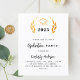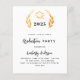 Fond blanc. Une couronne de laurier en or faux classique et une toque de fin d'études. Personnalisez et ajoutez l'année, le nom et les détails. Texte noir.
