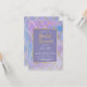 Ces élégant, 3,5" x 5" (petit) et invitation nuptiale moderne de douche comporte un arrière - plan peint à la main d'aquarelle des nuances de bleu, du pourpre et du rose. Il comporte également les mots "Fête de la mariée" dans une police moderne d'or, avec un cadre et une ligne assortis motif d'or. Une belle et chique manière aux invités d'invitation à votre événement spécial de pré-mariage.