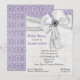 La belle lavande et le blanc ont coloré l'invitation nuptiale de douche, avec une dentelle blanche comme la conception, au-dessus d'un arrière - plan coloré par ivoire. Un arrière - plan de lavande, avec le recouvrement blanc de dentelle, au dessus de l'invitation et du verso. Des graphiques d'un ruban et d'un arc blancs, au dessus, est décorés d'un jolis ton et améthyste argentés comme le bijou. Personnalisez tout le texte pour adapter à votre événement spécial. Belle invitation de souvenir que la jeune mariée à être aimera.
