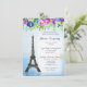 La sensation douce et romantique avec Tour Eiffel sur un fond bleu en pastel et un bruit lumineux d'aquarelle fleurit la danse à travers le dessus. Unique, frais et moderne avec le ressort coloré fleurit. Des bleus, des pourpres, des verts, et une éclaboussure du rouge - perfectionnez pour le mariage orienté français ou français. Éditez facilement pour votre propre douche nuptiale ou faire-part de mariage. Présentez vos invitations dans le style !