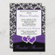 Cette invitation moderne chic à la douche de nage damassée en noir et blanc présente un ruban violet IMPRITED avec une paire de parties scintillant FAUX (IMPRITED) joint le broch des coeurs diamantés sur elle. Tout le texte et le type de papier sont personnalisables. ***VEUILLEZ NOTER qu'il n'y a pas d'éléments surélevés sur cette conception. Tout est imprimé à plat. Il est montré ici sur papier de base, mais il serait particulièrement agréable sur le lustreux papier métallique "glace", qui a une subtile étincelle métallique. Je n'utiliserais aucun des papiers colorés (champagne métallique, or, argent, moucheté) car ils TOUS décoloreront l'invitation. Le papier de lin ajoutera une texture de lignes fines que vous ne souhaiterez peut-être pas. Les papiers de base ou recyclés sont une alternative moins chère si vous avez un budget plus serré.***VEUILLEZ NOTER que si vous modifiez la police ou la taille de la police, cela peut modifier la façon dont votre invitation imprime. Il imprimera la façon dont vous la voyez sur votre moniteur, donc si vous avez des problèmes d'alignement, ou de dimensionnement, s'il vous plaît contactez-moi pour obtenir de l'aide. Je ne verrai pas votre invitation une fois que vous l'aurez commandé, et Zazzle ne modifiera rien (fautes de frappe, alignement, etc.). Si vous avez besoin d'aide ou souhaitez obtenir d'autres articles correspondants, veuillez envoyer votre demande par courriel à niteowlstudio@gmail.com.