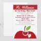 Une invitation à la douche de mariée pour la mariée de l'enseignant avec un schéma de couleur rouge. Personnaliser avec le nom de la mariée en blanc au-dessus du rouge. En bas, on peut voir l'illustration d'une pomme rouge avec un anneau de fiançailles de diamant solitaire autour de la tige et de la feuille. Personnalisez avec les détails de votre événement.