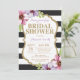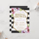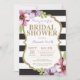 Invitation de Fête de Mariage Violet Noir et Or. Fleur de floral aquarelle violet et rose. Paillettes d'Or. Rayures Noires et Blanches. Pour une personnalisation plus poussée, veuillez cliquer sur le bouton "Personnaliser" et utiliser notre outil de conception pour modifier ce modèle.