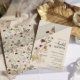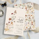 Cette invitation de fête de mariage élégante présente un magnifique papillon aquarelle peint à la main et des fleurs sauvages disposées en un charmant bouquet. Le dos comprend un motif coordonné. Trouvez des articles assortis dans la collection Fête de Mariage Boho Wildflower.