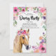 Invitez vos invités à une fête de mariage chic dans le style Derby. Cette élégante invitation florale présente une gracieuse illustration de cheval et un cadre de bouquet vibrant. Personnalisez les noms, la date, l'heure et le lieu pour convenir à votre événement.