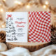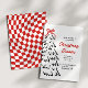 Cette invitation à une soirée de dîner de Noël présente des damiers rouges gras, un sapin de Noël dessiné à la main et un beau nœud pour tout rassembler. Caractéristiques d'une typographie amusante et inspirée des années passées et d'une palette de couleurs noire, rouge et blanche. Invitez vos amis et vos proches à votre dîner de fête annuel !