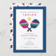 Célébrez votre joueur de pickleball ou votre fan avec ces invitations de fête amusantes et vibrantes avec des raquettes de pickleball rayées bleues, vertes et roses. Le texte est personnalisable. L'âge d'anniversaire est également personnalisable. Fait partie d'une collection de Parcel Studios.