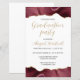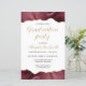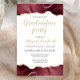 Cette invitation de fête de fin d'études tendance présente une bordure supérieure et inférieure de géode d'agate aquarelle dans des tons de rouge bordeaux avec des reflets de faux strass dorés. Les mots "Fête de fin d'études" apparaissent dans une police manuscrite moderne dorée décorative. Personnalisez l'invitation avec le nom du diplômé en or, ainsi que l'école, l'année de promotion et les détails de la fête en gris charbon sur fond blanc. Le dos de la carte est blanc uni.