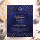 Un fond bleu marine orné d'étoiles dorées factices et d'une casquette. La couleur bleue est irrégulière. Personnalisez et ajoutez un nom, les détails de la fête et l'année. Le texte Remise de diplôme et le nom sont écrits avec une police de caractères manuscrits moderne. 1 feuille = 1 invitation imprimée de bord à bord.